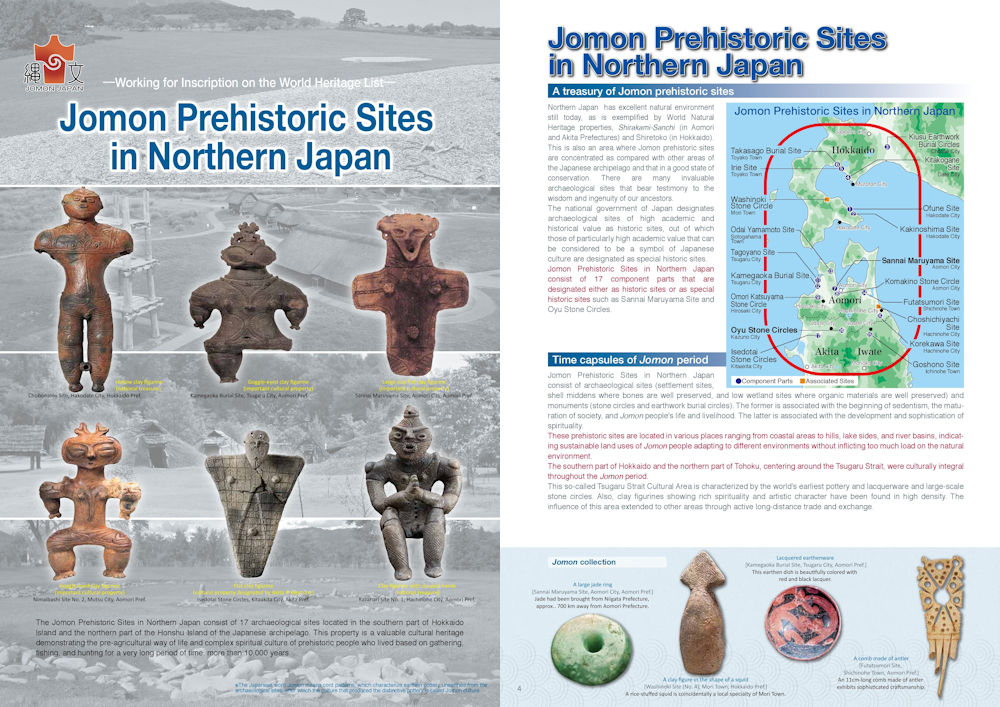 Parts of a leaflet I picked up at the Kamegaoka Jomon site. Of the six doguus on the left side, the praying doguu is featured on the lower right. You can see the location of Korekawa on the map on the right. The leaflet can be downloaded from https://jomon-japan.jp/en/archives#/asset-type/pamphlets. The leaflet is issued by the Council for the Promotion of the World Heritage Inscription of Jomon Prehistoric Sites led by Aomori Prefecture.