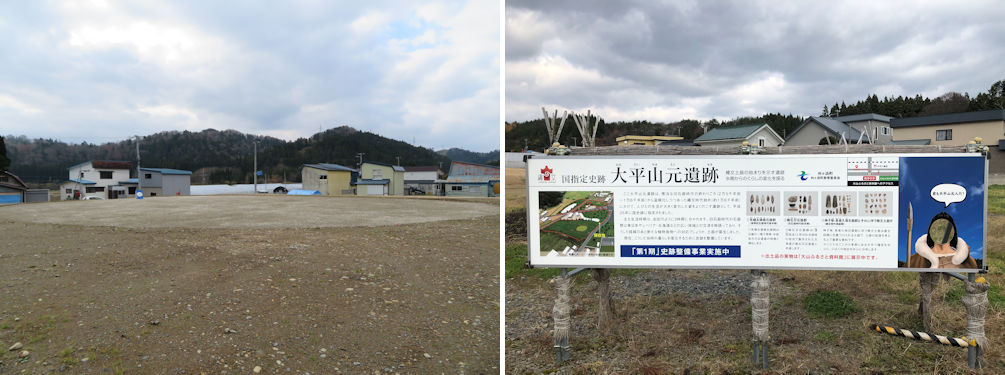The archaeological site was easy to find on the opposite side of the road. Work to convert about 20,000 square meters of land in the area designated as a national historic site in 2013. Most of the area was a residential area which is gradually being converted to a park to preserve the site as well as provide information to visitors about the site and its historic importance evidencing the transformation from the end of the paleolithic/glacier era to the neolithic/Jomon era. The area where the markless earthenware was excavated is now being developed. At present all that can be seen is a large smoothly flattened earth mound. It was quite an interesting visit, but I am sure it will become far more interesting once the development is completed.