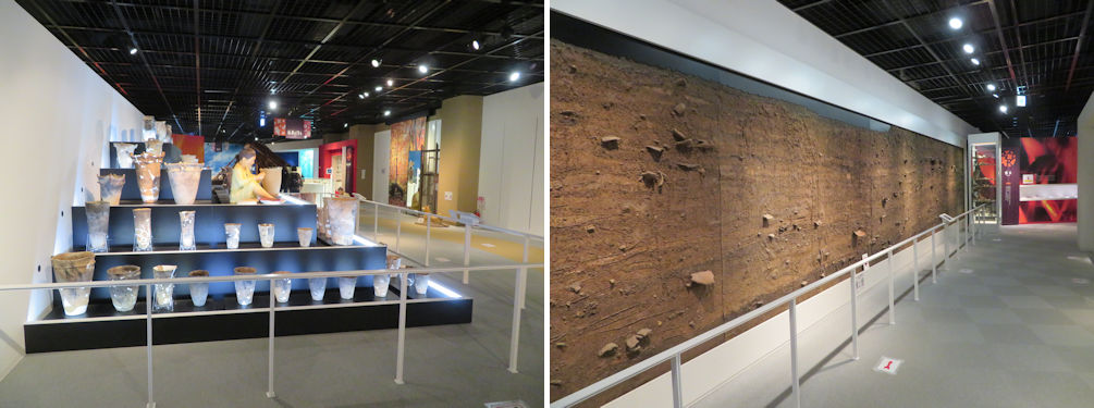 The museum houses some interesting displays including some of the many excavated pottery (left) and a cross section of the site soil. (right)