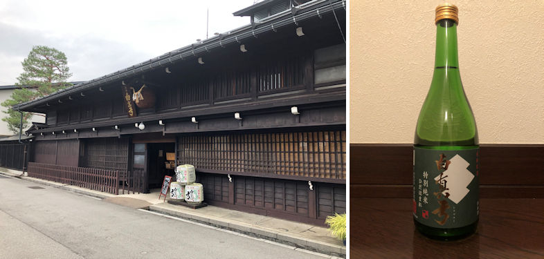 It is incredible that the small town still has two sake breweries. One of the breweries, Kaba Sake Brewery (left). I bought a 720-milliliter bottle of their flagship brand Shiramayumi Tokubetsu-junmai (special pure rice) made from a local sake brewing rice “Hidahomare (Pride of Hida) “.(right).