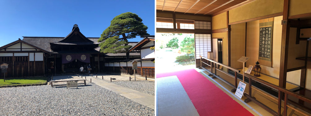 The entrance to Takayama Jinya (left) and the Governor's reception room (right). The room hosted one of the shogi (Japanese chess) Meijinsen titlematches in 2015.