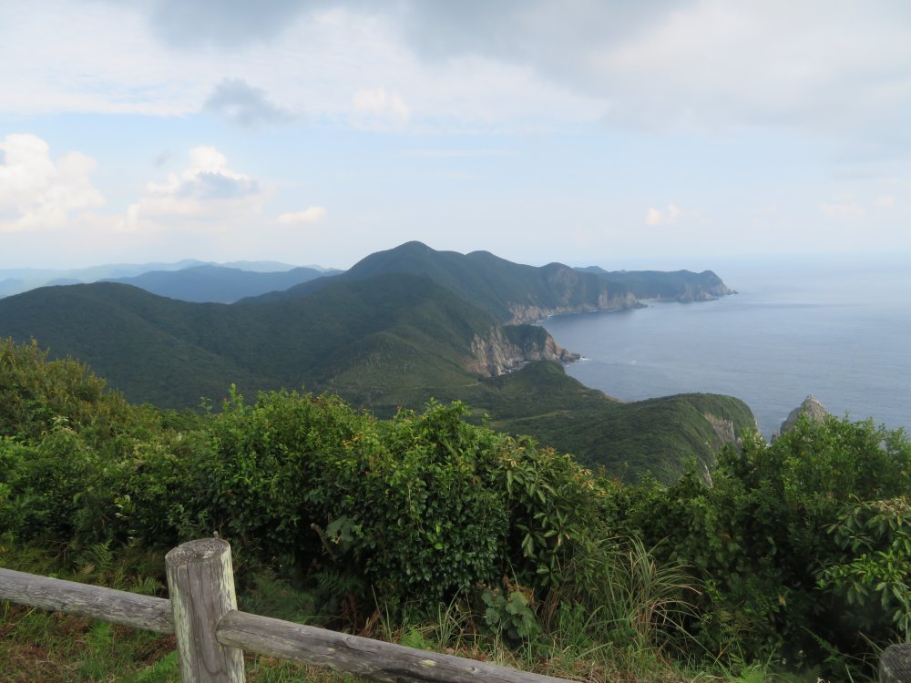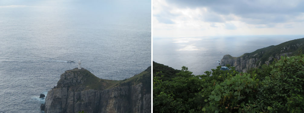 View toward the Eastern China Sea from the observatory deck of the Osezaki Lighthouse. The cliffs may have been the last view of Japan for the members of the envoys traveling to Japan in the 7th to 10th century.