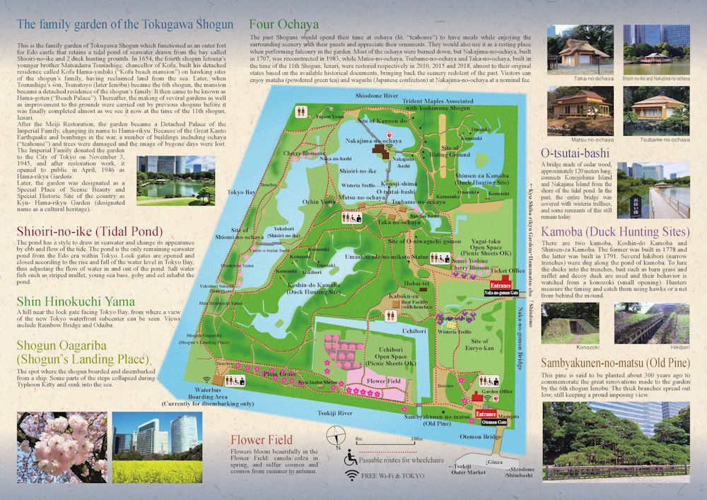 Map of Hama-rikyu Gardens available on Tokyo Metropolitan Park Association's website. I entered the garden from the Naka-no-gomon Gate shown on the center right.