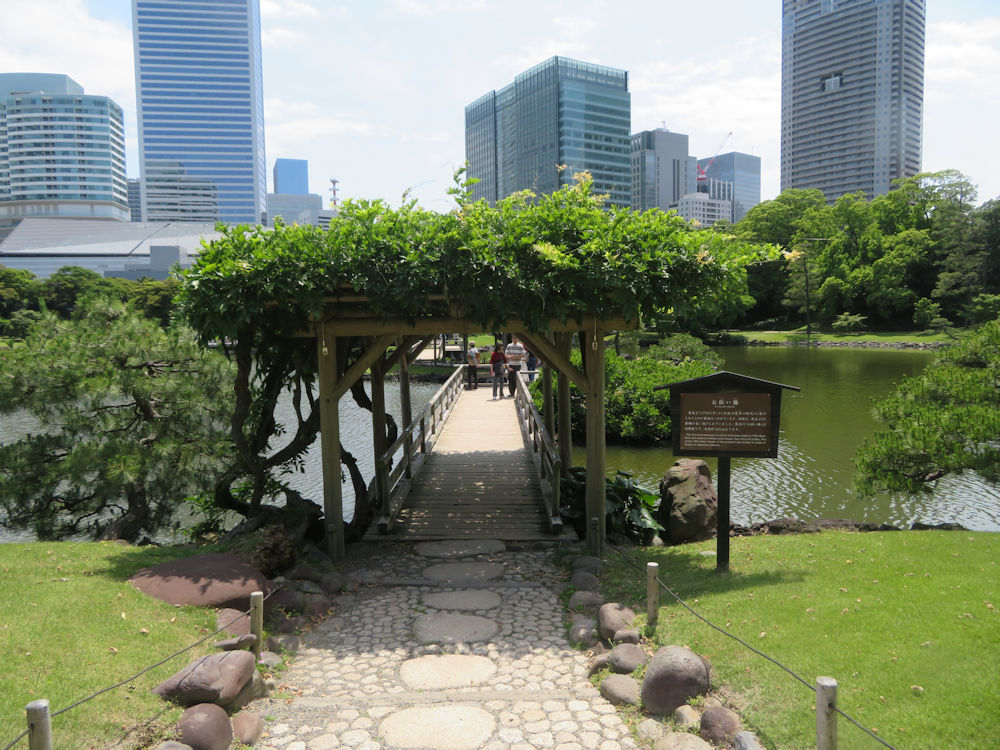 Start of the wooden bridge from the northern side. Notice the wisteria trellis. It was already past the flowering season (May).