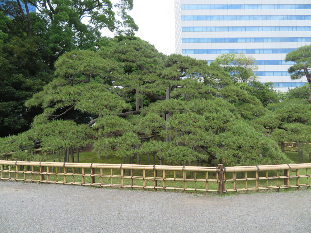 There were two volunteer guides, and we joined the group led by the older of the two. Volunteer guides at Tokyo’s metropolitan parks receive official training from the Tokyo Metropolitan Government and are provided with shared materials about the parks they serve, which helps ensure a certain level of consistency and quality in the tours. That said, it’s not realistic to expect guides to know everything. I was once asked—while guiding foreign visitors myself—how to tell whether a guide is good. I replied immediately, “Be cautious of guides who pretend to know everything. No one can possibly know it all. A guide who says ‘I’m not sure, so let me look that up,’ and checks online, is much better than one who just gives an offhand answer.” Of course, each guide has their own areas of interest, and that passion often comes through. In our case, the guide seemed especially fond of botany—his explanations of the plants were unusually detailed. The first stop on our tour was a large pine tree near the Otemon Gate. This black pine, estimated to be around 300 years old, is said to have been planted to commemorate the major redevelopment of this area by Ienobu Tokugawa, the sixth shogun of the Tokugawa shogunate. His father, Tsunashige Matsudaira, had reclaimed this land from the sea to build a secondary residence for the Kofu branch of the Tokugawa clan. Incidentally, the main residence (kamiyashiki) of the Kofu Domain at the time stood on the site where Hibiya Park is located today.