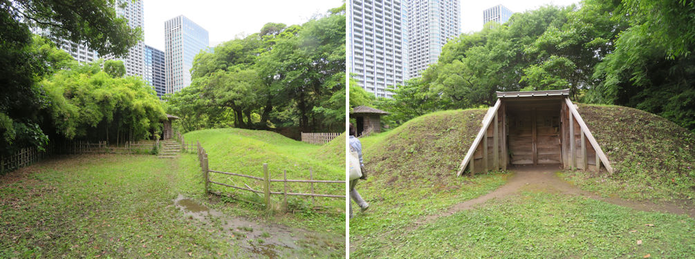(left) The oonozoki atop a small hill. The pond is on the other side of the hill. (right) The konozoki of the second kamoba.