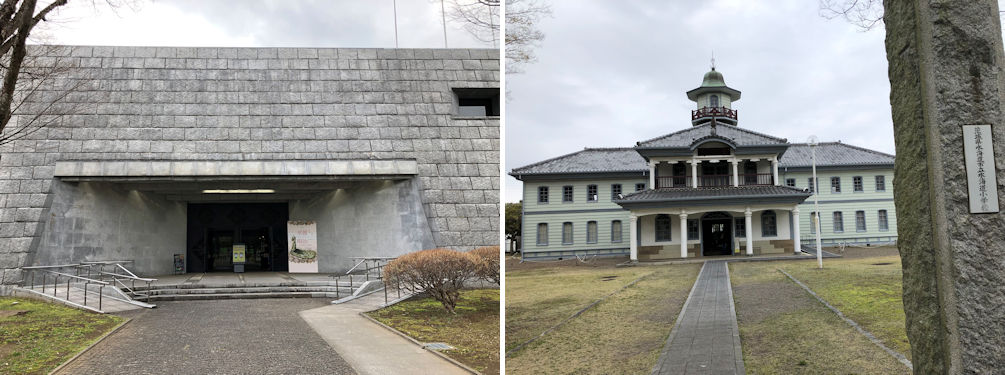 Ibaraki Prefectural Archives and Museum (left) and the relocated western style elementary school building built in 1881 (right).