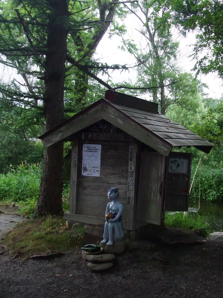 Tono, is located about 60 miles south west of Miyako in the inland. As Izumo is the heart of Japanese mythology, so is Tono of folklore. Kappa is a humorous imaginative creature, which resembles a hybrid of man and tortoise. They live in the waters, and are said to drag horses that are drinking water into the river. Their favorite food is cucumber. We strolled through the fields, and found a place behind the local temple called Kappa Ridge. You can get a fishing license for Kappa there and be provided with a fishing rod with large cucumber bait. A child told us she felt a tug. Perhaps you may be lucky enough to catch one yourself.