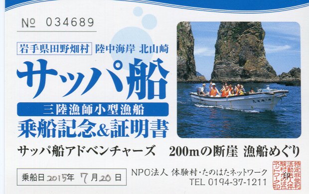 Boat cruise ticket. We went for a boat cruise to Kitayamazaki.
