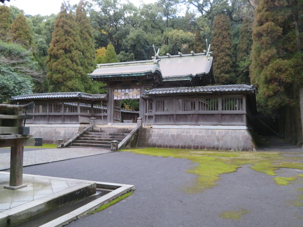 Just before he died, my father made a visit to Kagoshima Prefecture. My father born in 1926 barely escaped being called to the war front as the war came to an end in August 1945. As a journalist, he always stood on the side of the weak and was a staunch pacifist, which I knew came from his experience of the tragedies of WWII. I was at last able to fulfill my desire to follow his trail in Kagoshima Prefecture that I’d never been before. Kagoshima Prefecture is located in the southernmost part of Kyuushuu. It is composed of the Satsuma region in the west including Satsuma Peninsular, the Oosumi region in the east including Oosumi Peninsular and the southern islands the largest of which are Amamiooshima, Yakushima (a World Natural Heritage site) and Tanegashima. It has a population of 1.6 million ranking 24th among the 47 prefectures. In the history books, there are early references to Hayato people believed to have come from the southern islands to the Kagoshima area that succumbed to the rule of the Yamato Court around the 8th century, the powerful Shimazu Family who are one of the longest surviving feudal lord family that ruled the area for at least six centuries to the Meiji Restoration and the role Satsuma Fiefdom played in the Meiji Restoration and the ensuing Meiji government. In early January 2018, we landed at Kagoshima Airport at 11am, picked up our rent-a-car and drove off to our first destination, KirishimaJinguu.