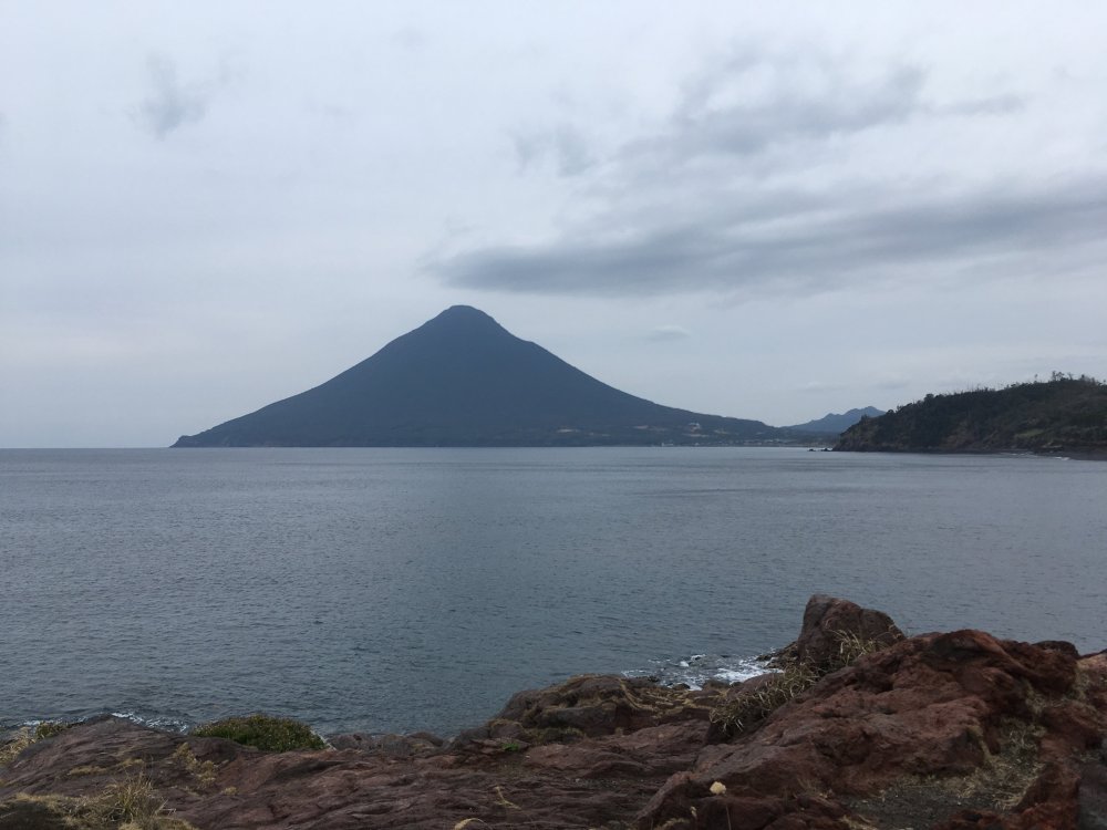 Looking west from Nagasakibana, the southernmost point of Satsuma Peninsular. The mountain across is Kaimondake.