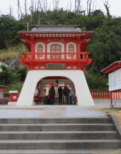 We left early in the morning from Ibusuki Onsen and drove south for about ten kilometers to the southernmost point of Satsuma Peninsular, Nagasakibana. It was a cold day, but we parked our car at the free car park which is at a lower level than the main road. We went up to the main road and made our way towards the lighthouse at the very end.