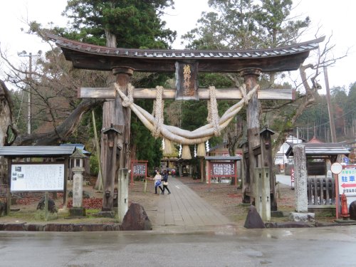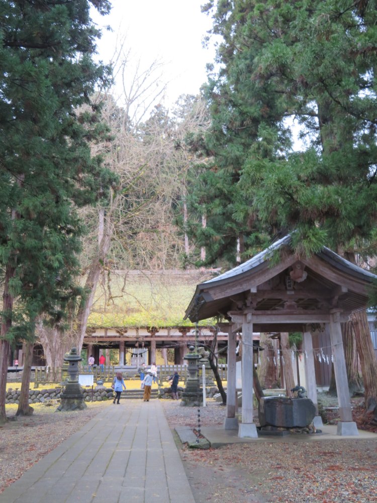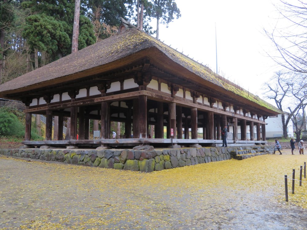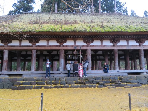 The shrine is famous for its unique large rectangular praying area (nagatoko).