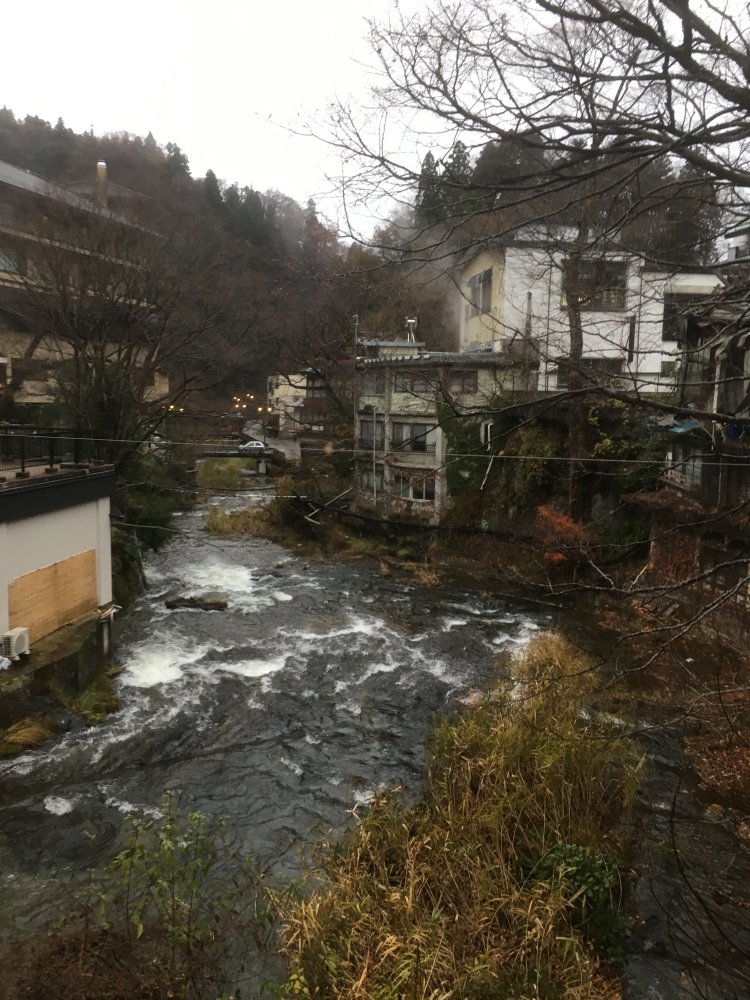 View of Higashiyama Onsen. The Onsen ryokans are mainly located along the river.