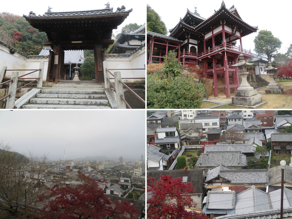 From the high street, we went up the stairs to Saihouji Temple. Saihouji is a former zen sect temple converted to the Joudo sect in the Edo period. The main temple building was refurbished in the early 18th century. What is unmissable is the platform called Fumeikaku built in 1758, from where you can command a spectacular view of Takehara, and which has been a favorite film shooting spot.