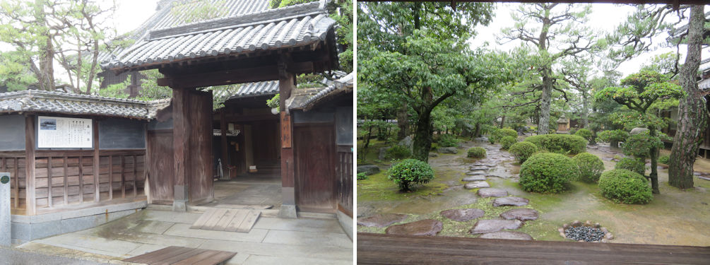 The entrance to the Morikawa residence (left) and the beautiful inside garden (right).