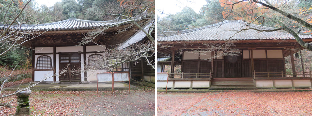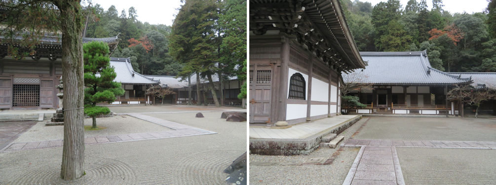 The Jizoudou built in 1406 is the oldest building in thetemple (left) and the Kaizandou (right).