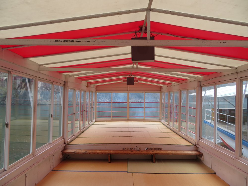 The boat cruise starts every thirty minutes from 9:00 to 16:30. We went to the ticket office at 9:00 but were advised that the first cruise would leave 9:30 and asked to wait in the waiting room. No wonder why, as when we were taken to the boat with a seating capacity of a hundred twenty us two were the only passengers. The tourism season doesn’t start here till late April. The boat cruise took us upstream first, made a U-turn past the starting point downstream to the end of the dam. This Lake Shinnryuu is a serpent like dam built over Taishaku River, which flows south to join Takahashi River in Okayama Prefecture and flows into the Seto Inland Sea. The cruise takes forty minutes and gives you the chance to really appreciate the beauty of this valley. The cruise ticket is 1,200 yen per person, but in most cases you should be eligible for a discounted price of 1,000 yen by using a discount voucher that most hotels provide to guests.