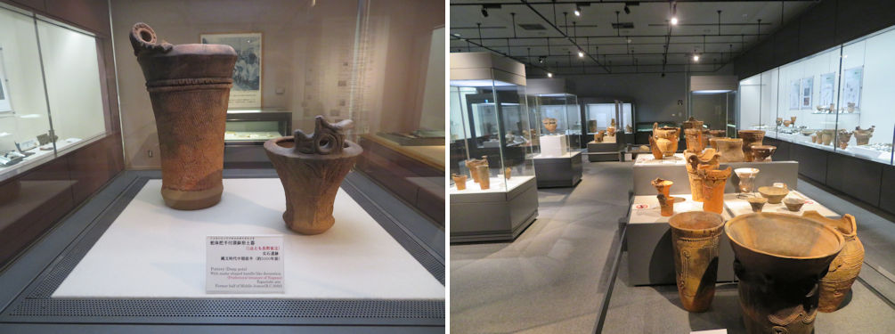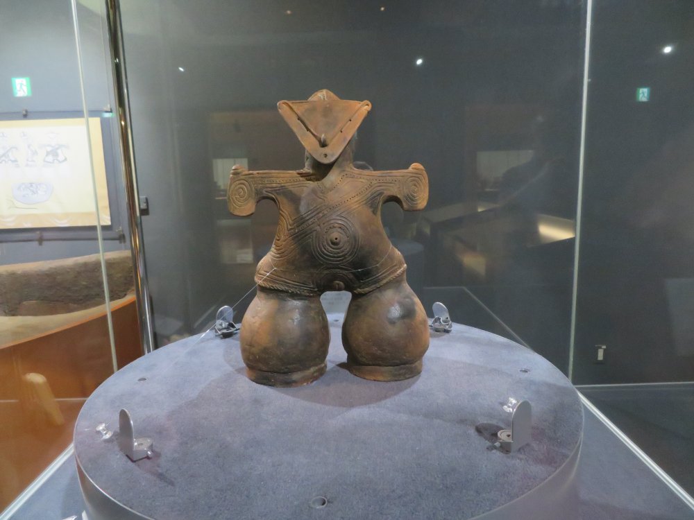 Of particular interest to me were the two doguus (clay figurines) excavated from Jomon sites in Chino City and designated as national treasures. Shown above is the Masked Goddess from around 2000 B.C. on display at the Togariishi Museum of Jomon Archaeology in Chino City.