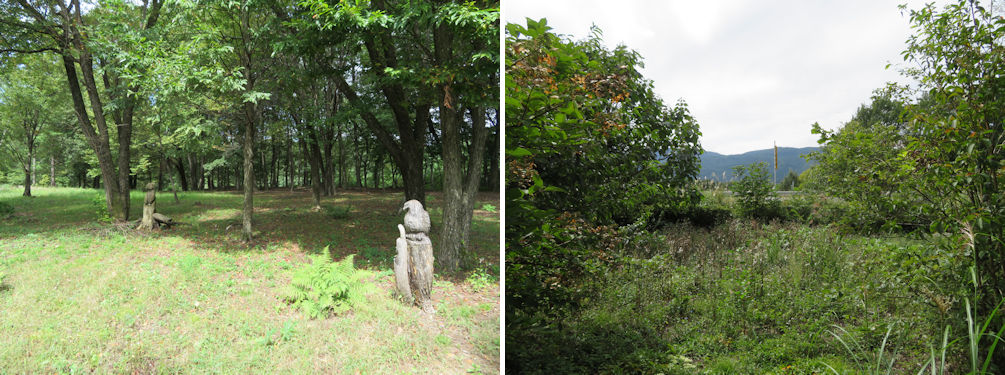 There were some carved animals carved on felled tree barks. I guess this is in part of the center of the site (left). Looking north to the Chuo Expressway a sone throw away (right). Most of the dwellings were on the other side of the expressway.