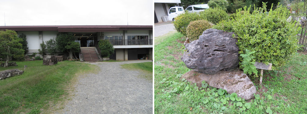 The Idojiri Archaeological Museum didn't look like a typical museum (left). There are outdoor displays of the rocks the Jomon people used for their stone tools. In the picture is an obsidian rock. Obsidian mined in the area was widely used in Central Japan to make stone knives and arrowheads (right).