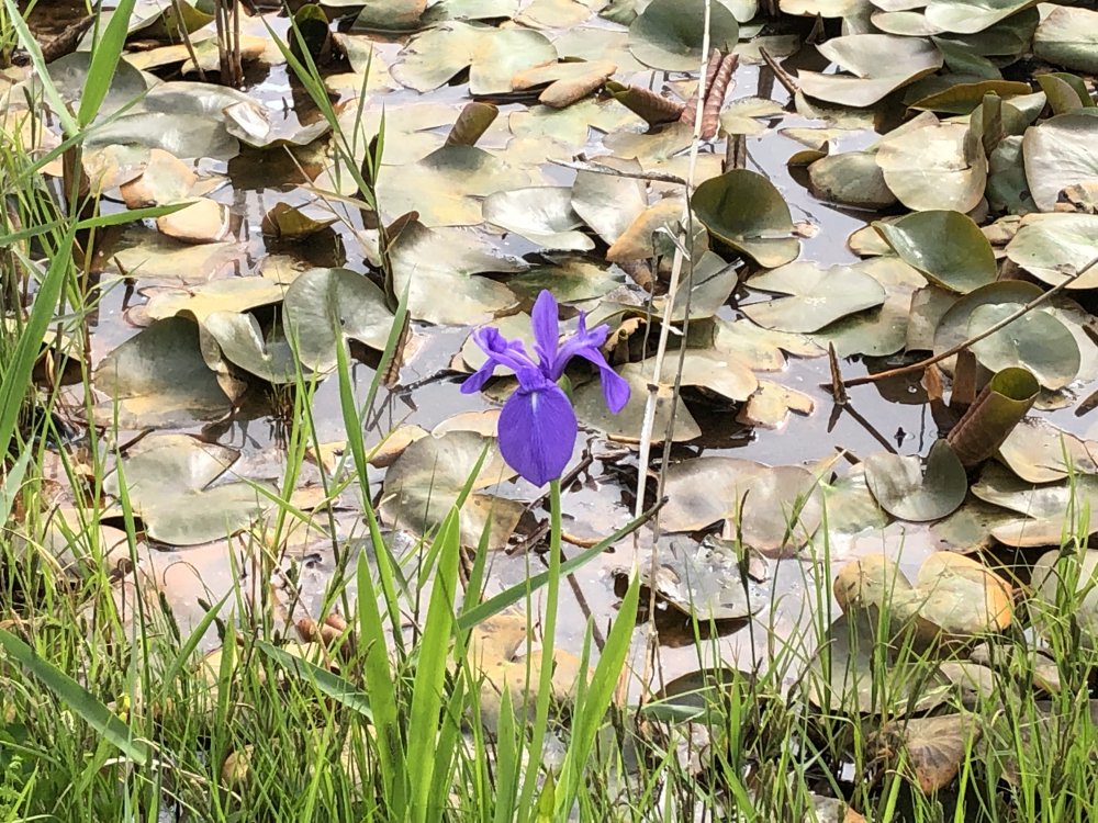 We paid another visit to the park in mid May 2022. I had done some homework on kakitsubata, ayame and hanashoubu, which all look very similar. I wanted to reassure myself that the flowers above were kakitsubata, To our dismay, the area where we had found the flowers had all been mowed. I had guessed they were kakitsubata, as they were growing on the side of a bank of a shallow pond shown on the park map as a kakitsubata area. But now looking at the picture it appears I was wrong and they were ayame flowers. All the areas were now dominated by large yellow shoubu (a type of hanashoubu). We were just about to leave when I found some purple flowers by a water lily pond. These were unmistakably kakitsubata, with their distinct white stripes inside the petals. I can only hope I will find them next year as I understand they are designated as an endangered species in many prefectures.