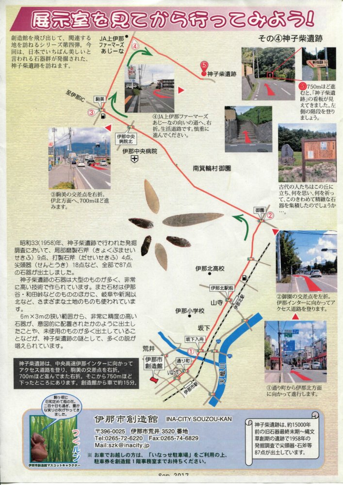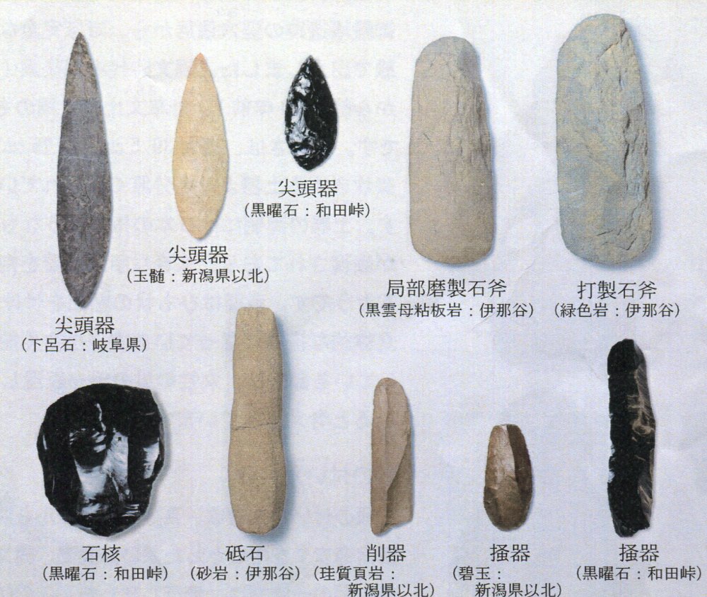 Part of the magnificent stone tools excavated from the Mikoshiba site. From the leaflet of the Souzou-kan Local History Museum in Ina City.