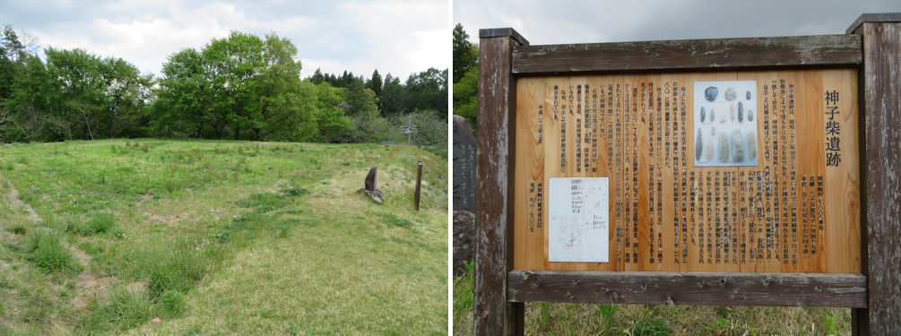 In 1958, 87 stone artefacts including axes and spearheads were excavated from a small area of 6 meters by 3 meters. Most of the artefacts were unused or work-in progress. Although no consensus has been reached on the purpose of the site and artefacts, it is widely understood that the site can be dated back to around 13000 B.C. While some objects used blade technique common in the paleolithic age, many applied advanced polishing technique. Stone artefacts with similar features are found across Jomon sites of later periods from Aomori to Kagoshima. Such objects are called Mikoshiba style stone tools. The objects were designated as important national cultural properties in 1988.