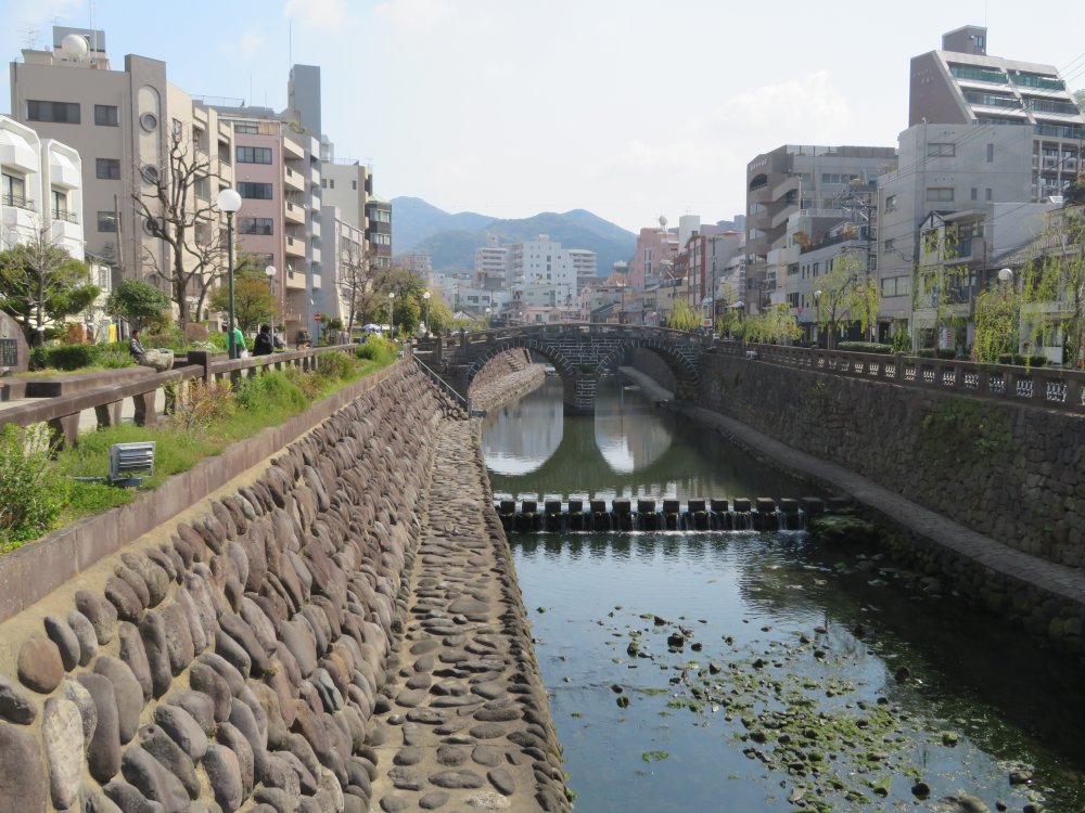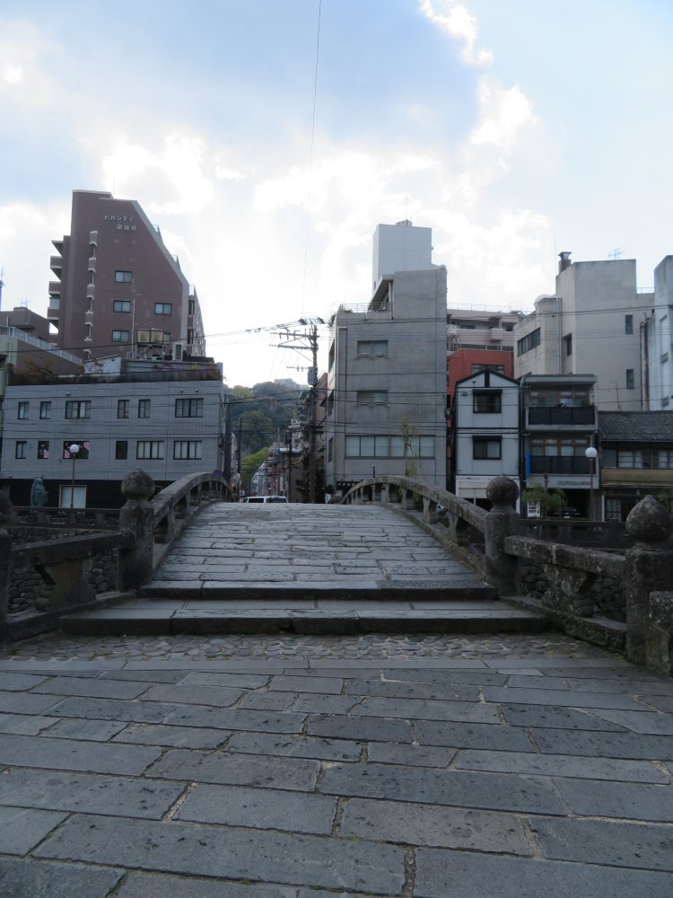 We first viewed Meganebashi (spectacles bridge), a two arch stone bridge, so called because the reflection of the two arches in the river at full moon resembled a pair of glasses. It is one of the over ten stone bridges crossing over Nakashima River all originally built in the 17th century. I am told Meganebashi was built in 1634 by the Chinese high priest of Koufukuji Temple, which I will introduce later.