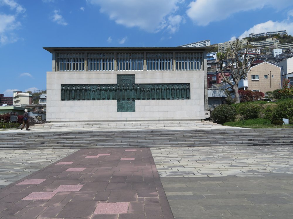 It’s about a ten minutes’ walk from the Peace Park to Urakami Catholic Church. The history of the church can be traced back to 1879, six years after the ban on Christianity was lifted when the first church was built. It moved to the current site a year later, construction started and the cathedral was completed in 1914. The cathedral was completely destroyed by the atomic bombing. The current cathedral was rebuilt in 1959 after a long debate on whether to preserve the ruins or not.
