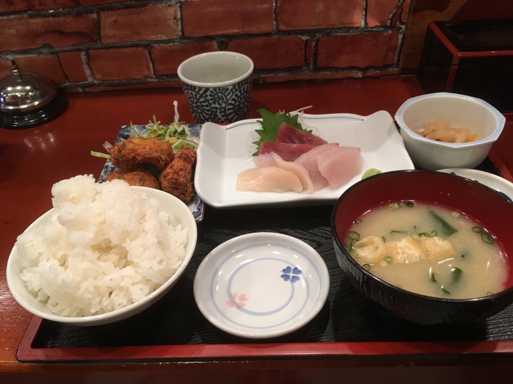 The menu was composed of local sashimi, fried fishmeal, a side dish, rice, pickles and miso soup. I didn’t know until this trip that surimiage (fried fishmeal) is also a Nagasaki delicacy.