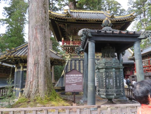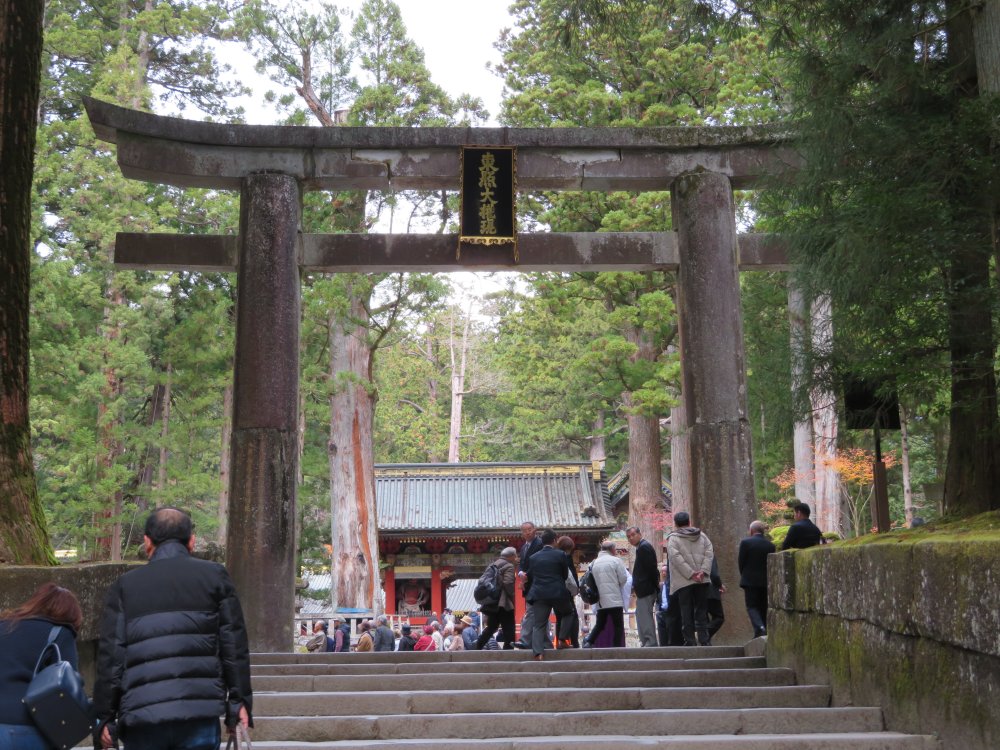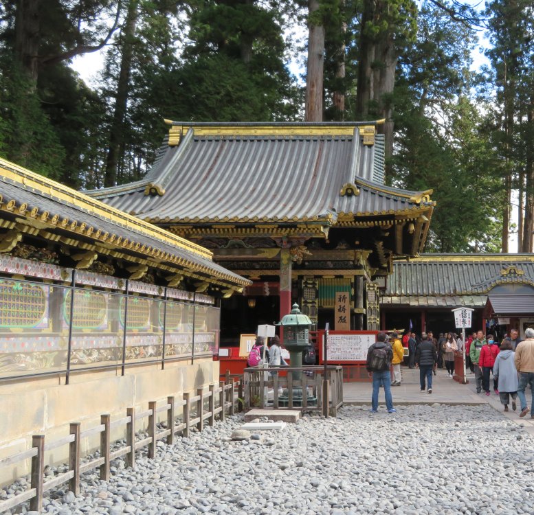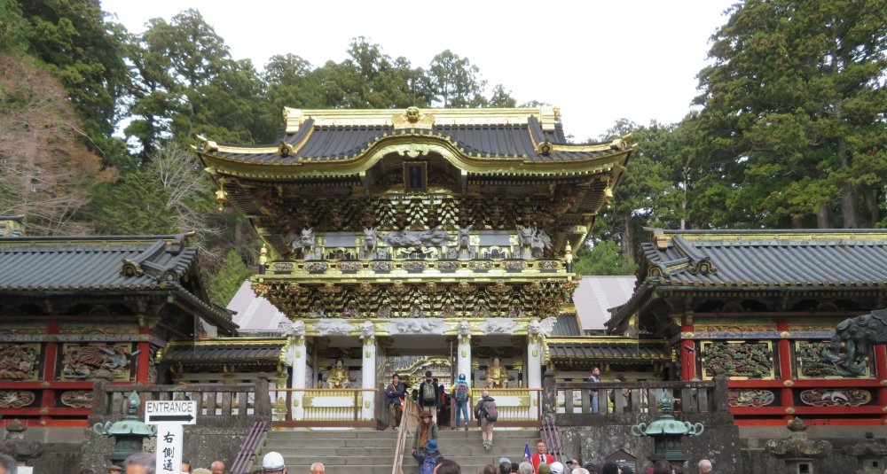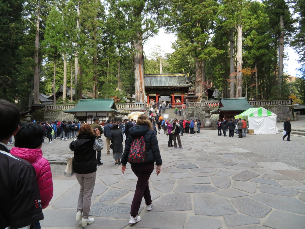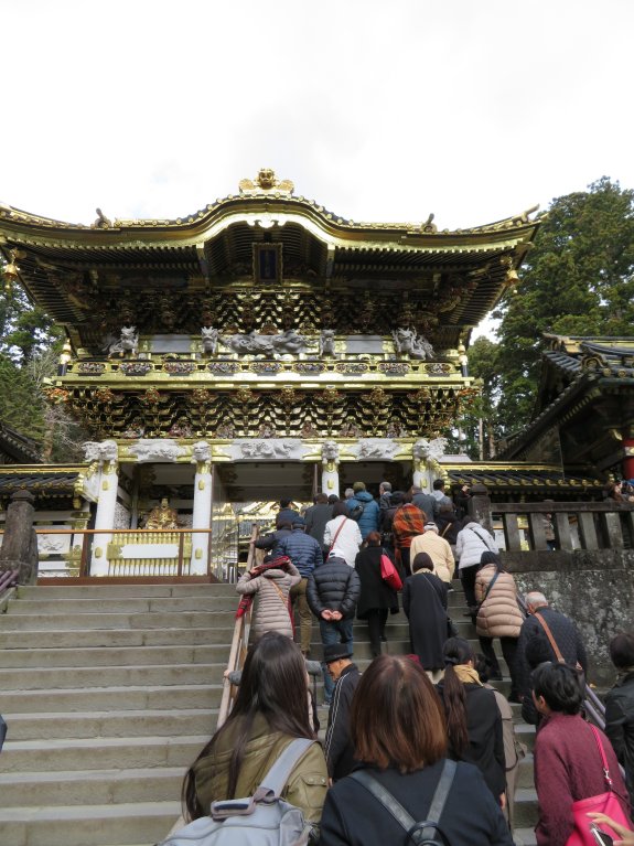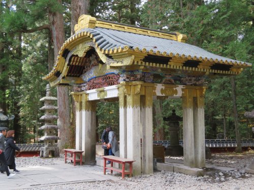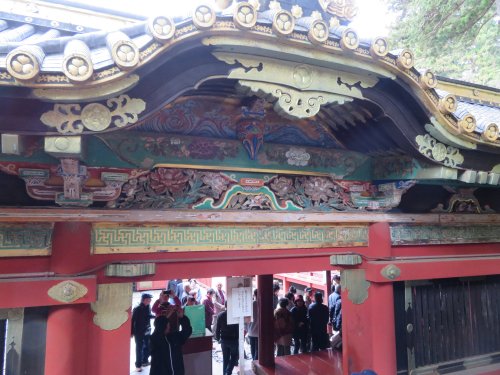 We went up the steps to reach the famous Youmeimon Gate. The name Youmeimon was taken from one of the gates of the Imperial Court in Kyoto. There is so much literature on Youmeimon. Suffice it to say that it is regarded as one of the grandest gates in Japan, embroidered with over five hundred figures from folklore and saints and sages, using the highest technique of the early Edo period and by master builders and artists. So grand is the gate that it is also called Higurashinomon (the all-day gate) as one could stay and marvel at the gate from dawn to sunset.