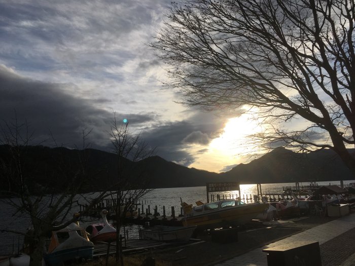 Kegon Waterfalls (left) and Lake Chuuzenji at sunset (right).