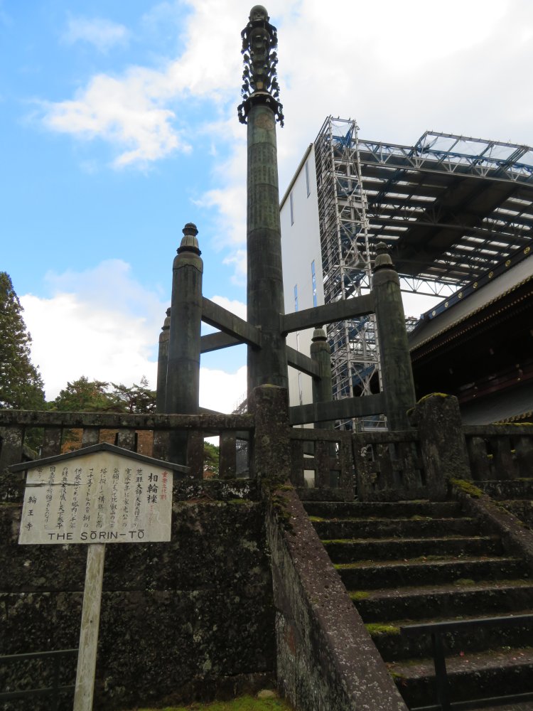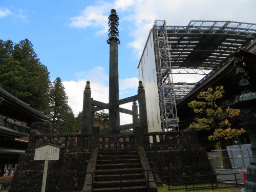 In front of the Gomadou on an elevated level stands the Sourintou. The explanation at the bottom tells us that this is a 15 meter high bronze pole erected by the high priest Tenkai in 1643 to pray for peace in the country under request of Iemitsu. A thousand Buddhist scriptures are contained inside the pole.