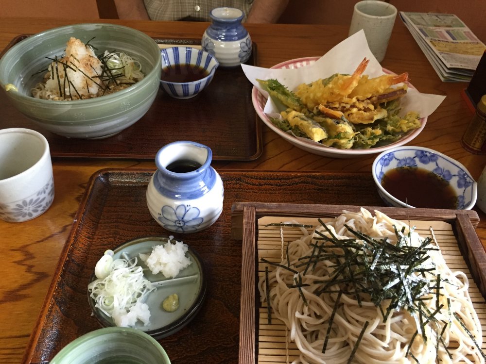 It is about a 30 kilometers drive to Matsushiro. As it was noon time, we decided to have lunch before exploring Matsushiro. In the article on Izumo, I wrote about soba (buckwheat noodle) and that northern Nagano was one of the areas famous for its soba. We came across some soba noodle restaurants closer to the castle. There was one in an historic samurai house from the Edo era. It certainly seemed very popular as the restaurant was packed with guests most of them waiting to be served. When having soba, it is preferable to have Teuchi (hand-made) soba than machine made. Soba is made by kneading soba flour and then thinly slicing the dough. Only a limited amount is produced at a time on site, so they may run out of soba for the day or it may require some waiting time for them to produce more. We were getting hungry, so we gave up that restaurant and went on walking till we came across another soba restaurant in a more remote area.