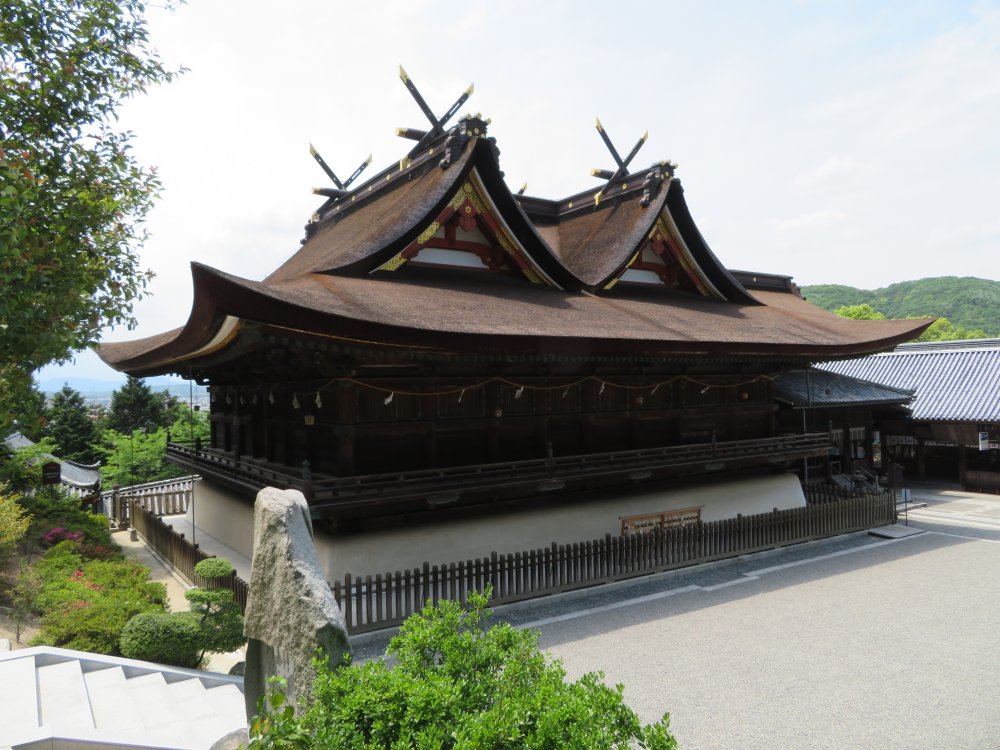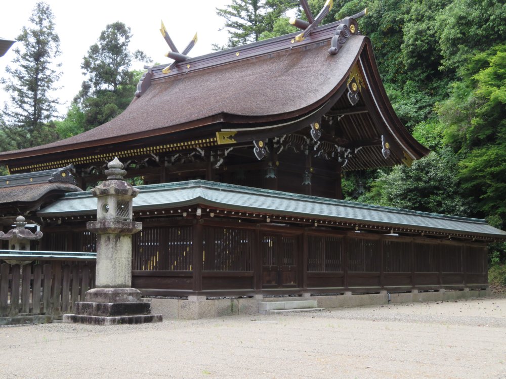 We momentarily reached the haiden and main shrine (honden) area. People pray from the haiden to the honden. The honden building is a really majestic building. It is twice the size of the honden of the prominent Izumo Taisha and the second largest in the country. It took 25 years to be completed in 1425. It has a unique double roof named Kibitsu Style. The only other example, I understand is the Soshidou in Hokekyouji Temple in Chiba Prefecture, which was built more than two hundred years later. The haiden and honden was designed as a joint building according to the shrines website and have been jointly designated as a National Treasure.