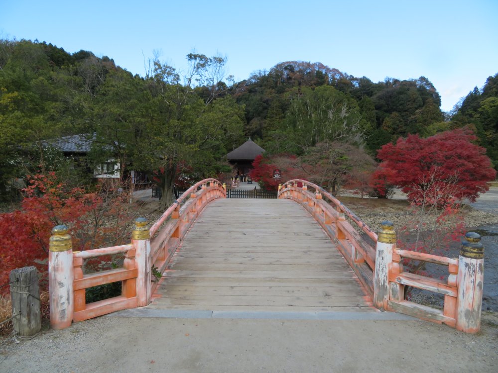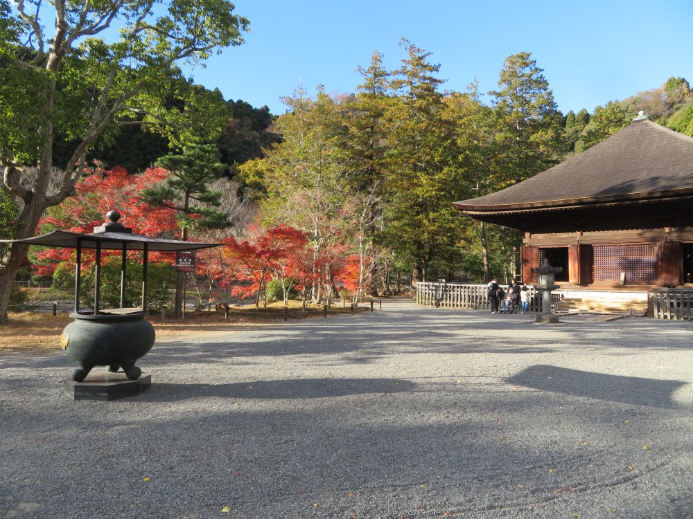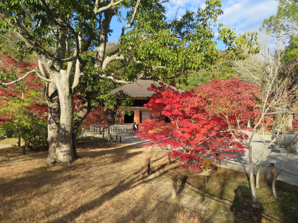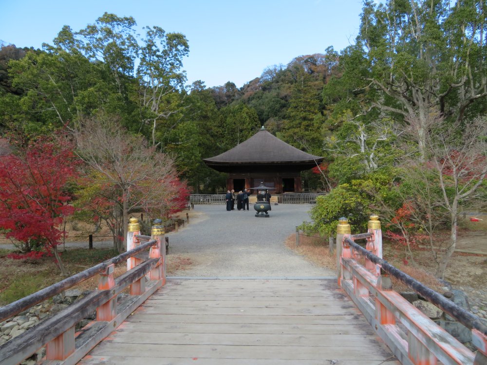 Once past the admission office, the Amida-do comes into sight directly in front on the other side of a bridge. The maple tree leaves had all turned beautifully red.