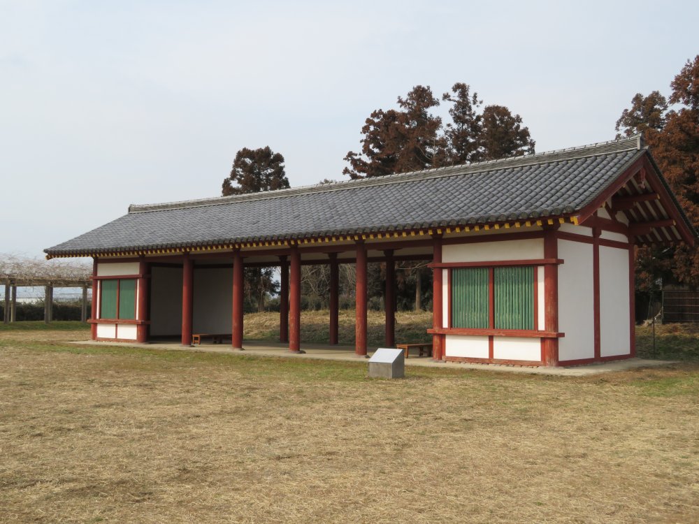 We next paid a visit to Shimotsuke Kokuchou ruins a couple of kilometers east of Tochigi City. Shimotsuke is the old name of what is now Tochigi Prefecture, and Shimotsuke Kokuchou was the local governmental office of the imperial court based in Kyoto. The Kokuchou functioned from the 8th to 10th century. Ruins were excavated in the late 1970s. A replica of the main building has been erected on the site. Other than this only meadows remain. The governmental buildings were situated on a plot of over two acres.