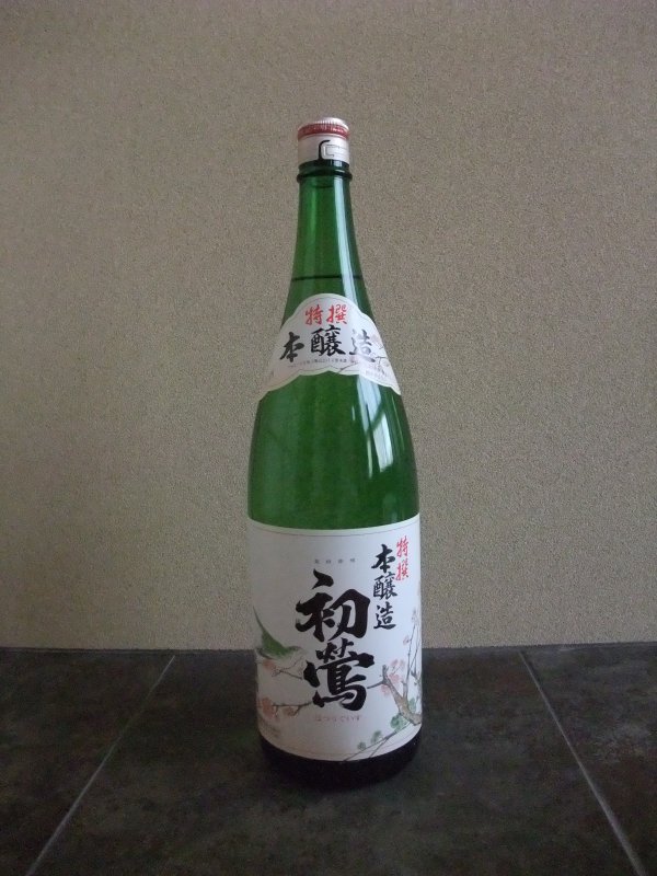 1.8 litre bottle of Hatsuuguisu honjozo from Saku on the left.