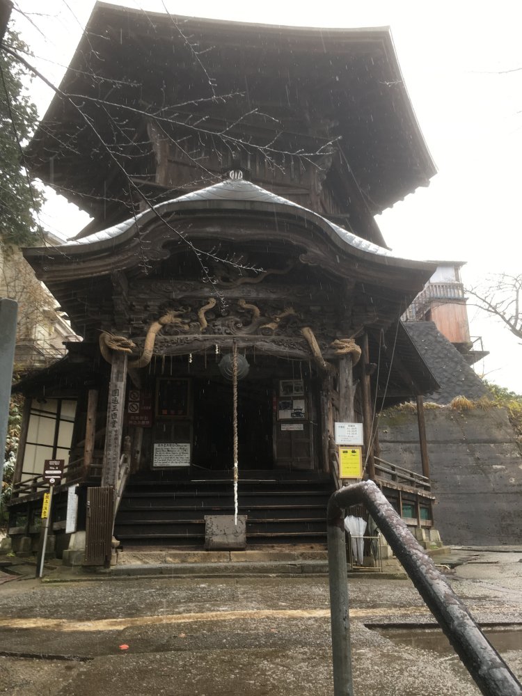 Sazaedou as it appears in front of you as you come up the stairs. You enter from this entrance and come out from the back.