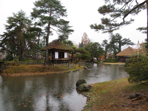 We picked up our car at Takizawa honjin to leave for the gardens of Oyakuen.Oyakuen literally means “medicinal herb garden”. I understand that the garden was part of a villa of the Ashina family that ruled Aizu until the late sixteenth century. Upon the fall of the Ashina family, rule of Aizu moved to the Gamou family the first ruler of which was a Christian lord, followed by the Uesugi family, then returned to the Gamou family, to the Kato family until finally to the Matsudaira family which rule lasted to the Meiji Restoration. The reason for the frequent changes of rule was due to Aizu’s strategic military importance and the Tokugawa shougun finally decided to entrust it to a descendant of the Tokugawas in 1643. The name Matsudaira was only allowed to such descendants.There is a herb garden on the left of the site after you enter from the gate which was started by the second and third Matsudaira lord which became the namesake of the garden of Oyakuen.