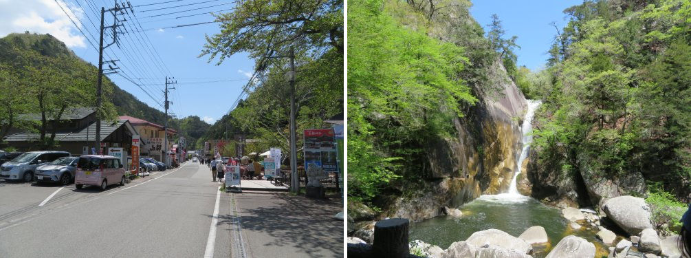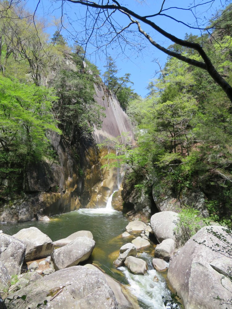 We left Takeda-jinja to explore the Shousenkyou Valley. Shousenkyou is a deep valley along the River Arakawa which joins River Fujigawa flowing to the Pacific Ocean created by the erosion of the granite rocks. The valley stretches about ten kilometers upstream from Nagatoro Bridge to Sengataki Waterfalls and Arakawa Dam. It is about thirteen kilometers’ drive north to Nagatoro Bridge from JR Kofu Station. We parked at the municipal free car park close to Sengataki Waterfalls. From the car park it is an easy fifteen minutes’ walk through an alley of gift shops and restaurants and then down to the waterfall. It was sunny and warm, ideal weather to enjoy the walk.