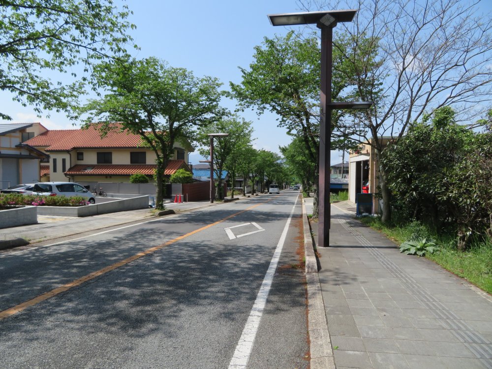 View from Takeda-jinja of the straight street Takeda-doori leading straight to Koufu Station.