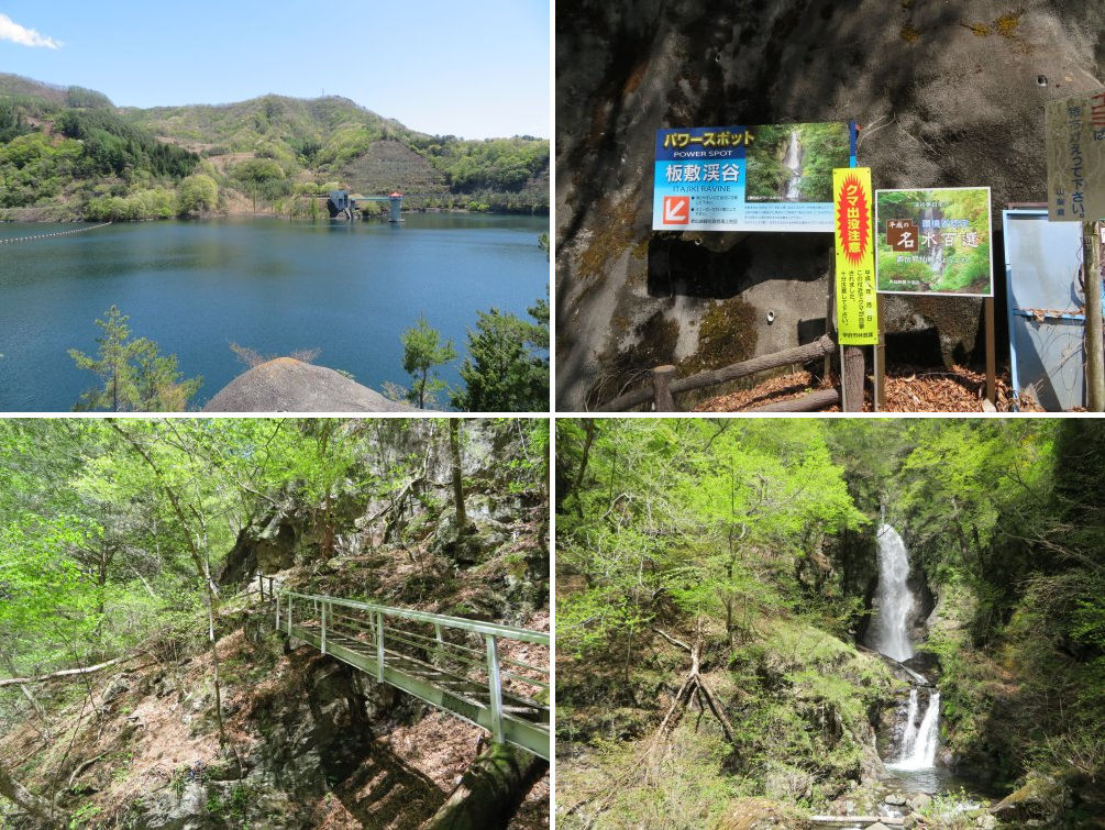 The beautiful Arakawa Dam (upper left), entrance to the Itajiki Valley (upper right). The excursion into Itajiki Valley wasn't that treacherous (lower left). We finally got to Ootaki Waterfalls (lower right).