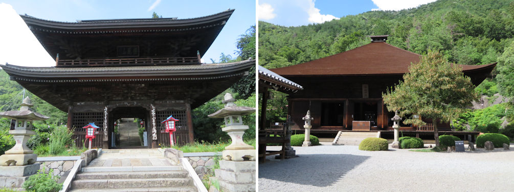 The sanmon entrance gate (left) and the Yakushidou built in 1286 and desiganated a National Treasure (right).